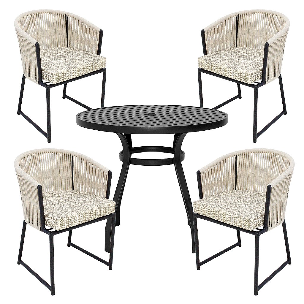 Assento e encosto das cadeiras em Corda náutica.