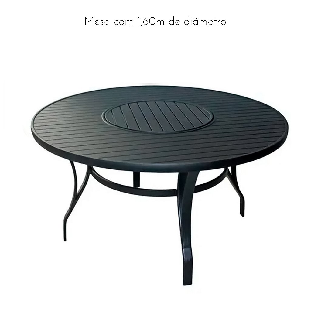 Mesa estrutura e tampo de alumínio ripado 1,60m Giratória para cozinha e área de churrasco.