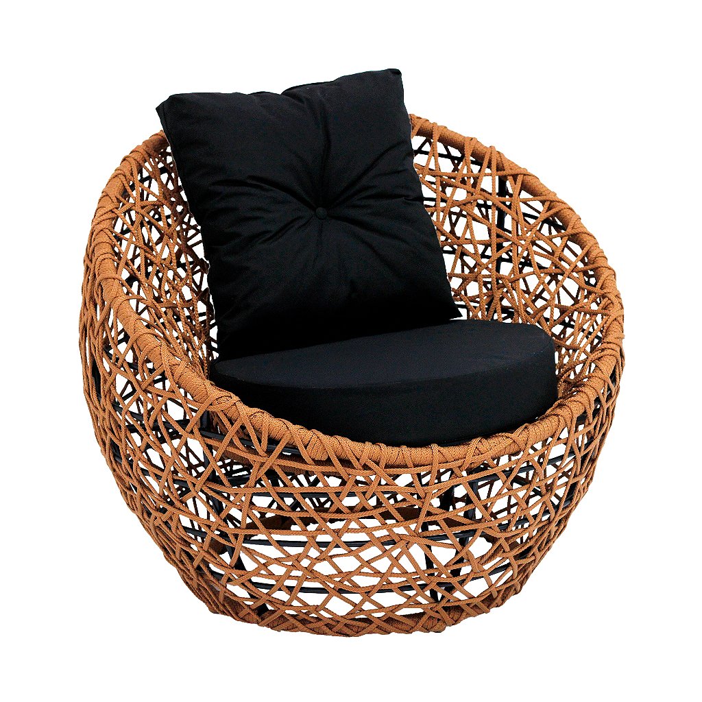 Poltrona redonda de corda náutica e aluminio para áreas externa, jardim, varanda, piscina e áreas internas.